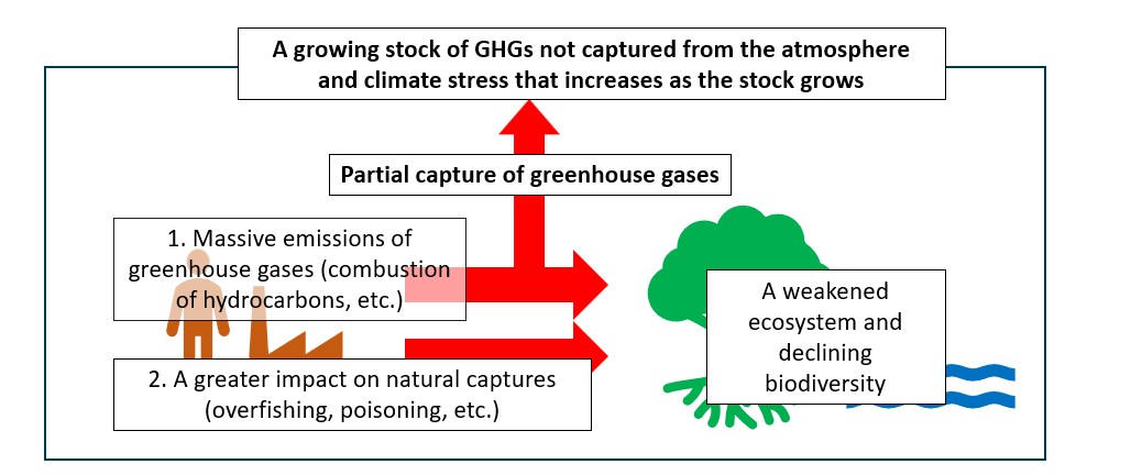 2. Subsequently, human activity has led to a growing and destructive surplus of uncaptured greenhouse gases