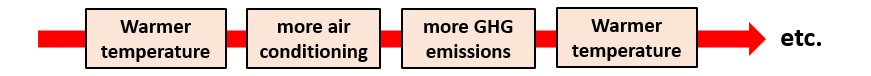 A vicious cycle of worsening conditions caused by measures to protect humanity, such as air conditioning